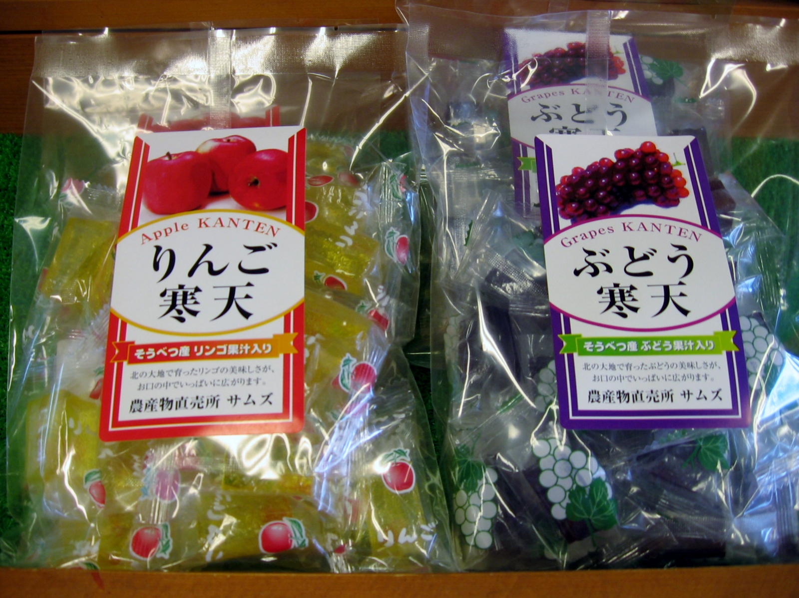 壮瞥町産100%のぶどう果汁とりんご果汁を使用してつくられたオブラートに包まれた昔懐かしい寒天ゼリーです。